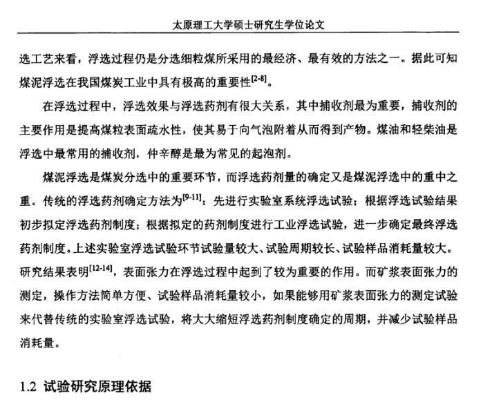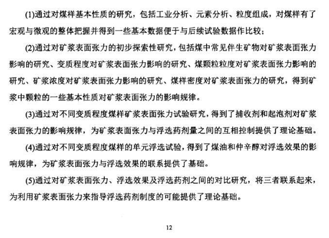 為研究浮選效果與礦漿表面張力之間的關(guān)系,對-0.5mm的平朔弱粘煤、馬蘭焦煤和晉城無煙煤進行了浮選試驗,研究表明:煤油或仲辛醇用量適當(dāng)時,隨著藥劑用量的增加,礦漿表面張力降低,可燃體回收率和精煤灰分升高,三者在同一藥劑量時達到極值點,并在相同的藥劑量范圍內(nèi)維持在極值點附近;煤油或仲辛醇用量過大時,隨著藥劑用量的增加,礦漿表面張力回升,可燃體回收率和精煤灰分回落。這一結(jié)果對利用礦漿表面張力來指導(dǎo)浮選藥劑制度、協(xié)助在線控制浮選可燃體回收率和精煤灰分有著重要意義。