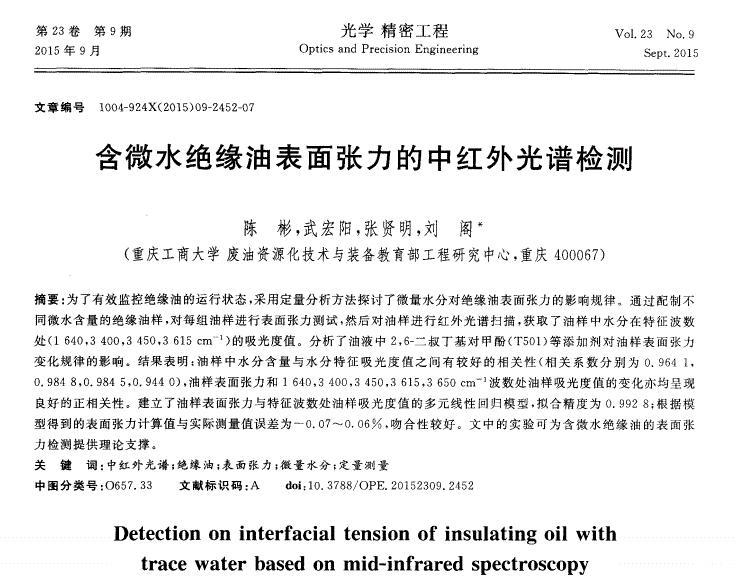 含微水絕緣油表面張力的中紅外光譜檢測